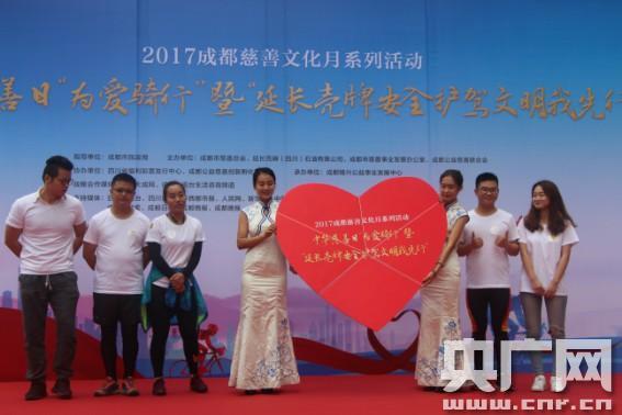成都市民政局副巡視員宋本收致辭(央廣網(wǎng)記者 韓民權(quán) 攝) 央廣網(wǎng)9月7日消息(記者韓民權(quán)) 為愛騎行,安全護(hù)駕,傳遞大愛。9月5日,中華慈善日“為愛騎行”暨“延長殼牌安全護(hù)駕文明我先行”活動(dòng)在成都舉行,4支隊(duì)伍為愛騎行15公里,為“中華慈善日”、“99公益日”開展宣傳。 成都市民政局副巡視員宋本收在活動(dòng)中表示,今年“中華慈善日”,通過“綠色宣傳+慈善倡導(dǎo)”的公益方式吸引社會(huì)愛心人士關(guān)注,對于推動(dòng)和共建“互聯(lián)網(wǎng)+”公益新生態(tài),多元化踐行企業(yè)社會(huì)責(zé)任,傳遞企業(yè)社會(huì)價(jià)值,動(dòng)員社會(huì)力量募捐籌款,實(shí)現(xiàn)全新的跨界全民公益模式起到了積極的作用。 隨后,參與為愛騎行的全體成員在啟動(dòng)儀式現(xiàn)場進(jìn)行了亮相并展示隊(duì)伍口號(hào),宋本收副巡視員同延長殼牌副總經(jīng)理姚遠(yuǎn)共同啟動(dòng)騎行出征儀式。 經(jīng)過近一個(gè)小時(shí)的騎行,各團(tuán)隊(duì)都完成了15公里的目標(biāo)。據(jù)悉,在10月下旬還將舉行一年一度的“為愛行走·成都站”活動(dòng)。 活動(dòng)現(xiàn)場還舉行了延長殼牌(四川)石油有限公司向成都市慈善總會(huì)捐贈(zèng)儀式。 -