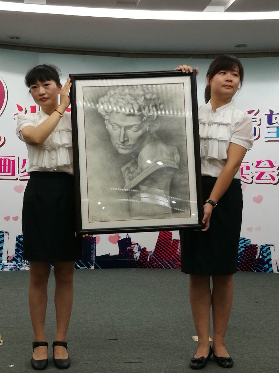拍賣會現(xiàn)場,一共拍賣了小婷的20幅作品和愛心人士捐贈的三幅作品。這些作品100元起拍,每次舉拍加50元。第一幅作品一經(jīng)亮相,就引發(fā)愛心人士頻頻舉牌,最終以1000元成交。隨后,一幅幅美少女、漫畫和玫瑰畫作被陸續(xù)拍走。一位愛心人士捐贈的書法作品《心經(jīng)》更是引起了現(xiàn)場的騷動。愛心人士競相舉牌,最終一位男士舉牌6000元拍得作品。