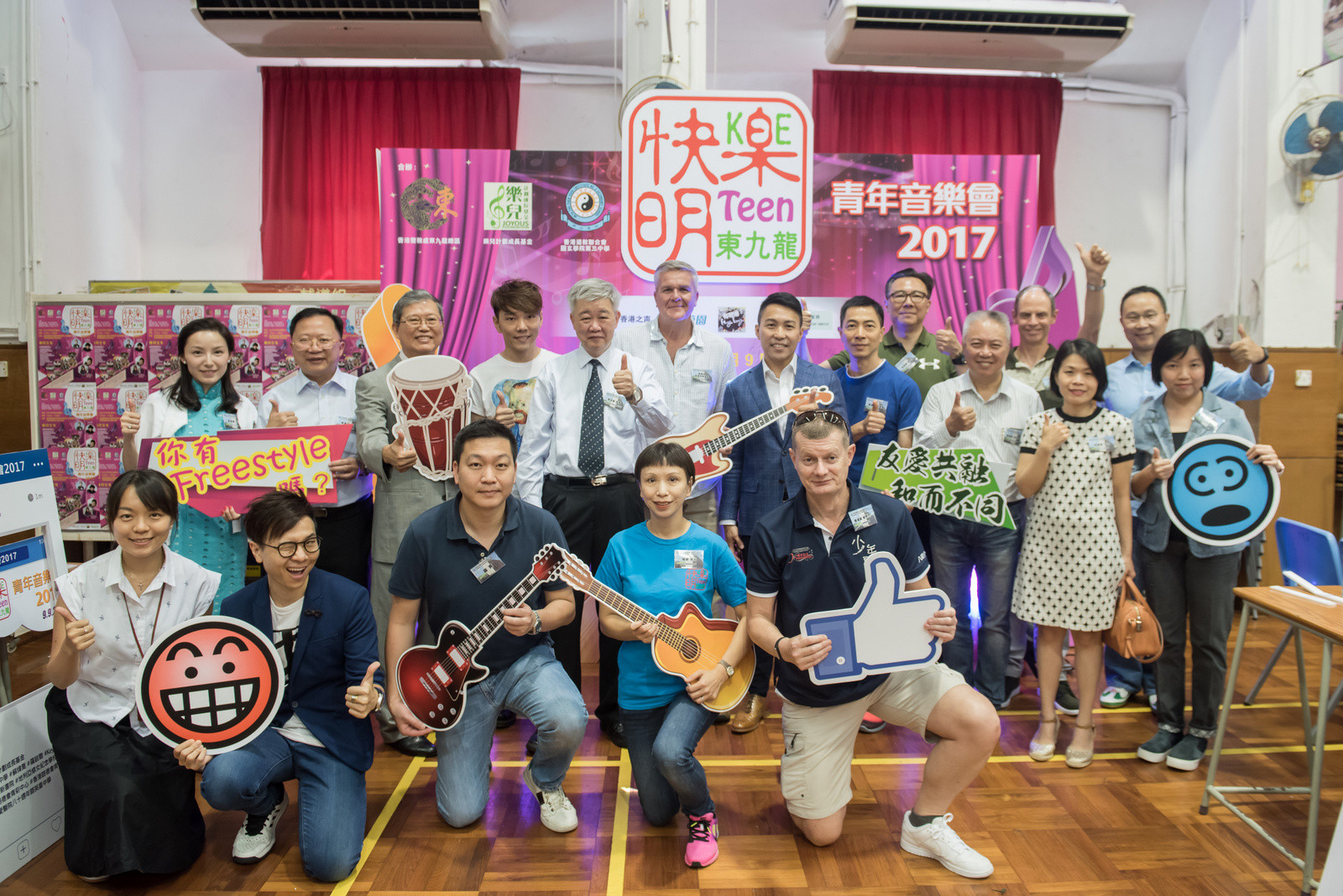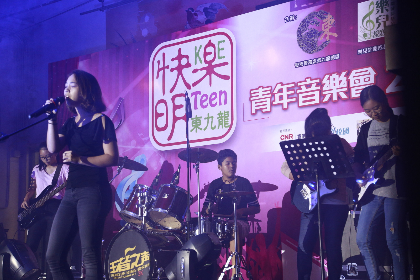 主禮嘉賓有東九龍總區(qū)指揮官麥國(guó)兆助理警務(wù)處長(zhǎng)、樂(lè)兒計(jì)劃成長(zhǎng)基金副主席陳李妮女士、香港道教聯(lián)合會(huì)圓玄學(xué)院第三中學(xué)李世基校長(zhǎng)及快樂(lè)明TEEN委員會(huì)主席陳耀雄先生,在熱鬧的氣氛中,揭幕禮上揮動(dòng)結(jié)他,音樂(lè)會(huì)正式開(kāi)始,當(dāng)日將軍澳、秀茂坪、觀塘及黃大仙警區(qū)的指揮官均有到場(chǎng)支持。