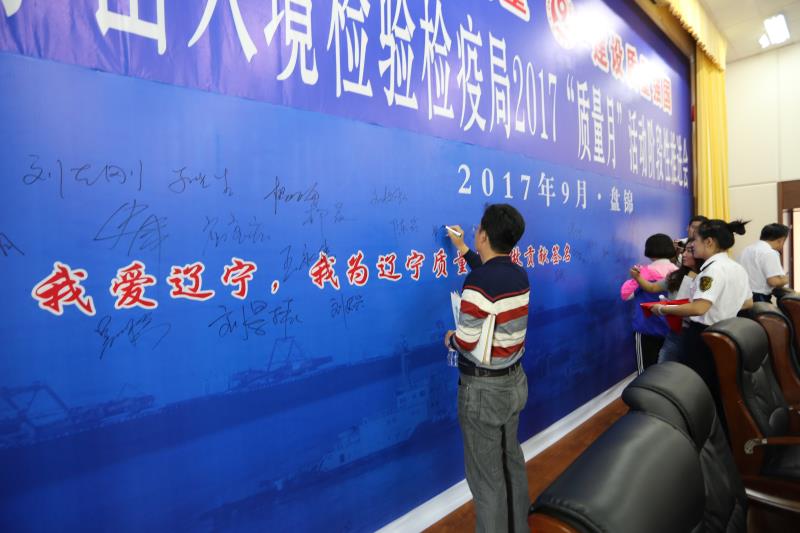 央廣網(wǎng)盤錦9月18日消息(記者張四清 通訊員張柏棋)以“大力提升質(zhì)量 建設(shè)質(zhì)量強(qiáng)題國”為主題的遼寧出入境檢驗(yàn)檢疫局2017年“質(zhì)量月”活動(dòng)階段推進(jìn)會(huì)”今天在盤錦市舉行,五十余家企業(yè)與有關(guān)部門共同簽署“我愛遼寧 我為遼寧質(zhì)量提升做貢獻(xiàn)”的承諾,引導(dǎo)廣大企業(yè)共同提升質(zhì)量。