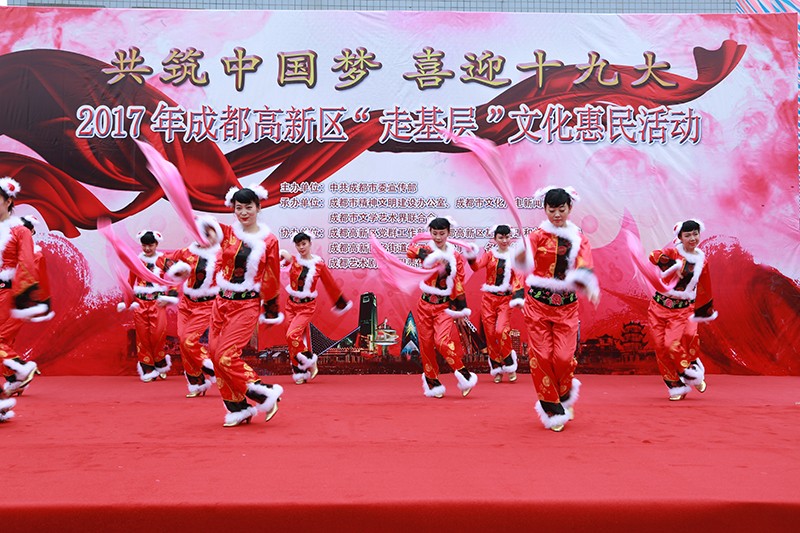 央廣網(wǎng)成都9月19日消息(記者劉濤)9月18日,成都高新區(qū)2017年“走基層”文化惠民活動(dòng)拉開帷幕。首場文藝匯演以“共筑中國夢,喜迎十九大”為主題,在成都高新東區(qū)海螺鄉(xiāng)文化站廣場精彩上演。