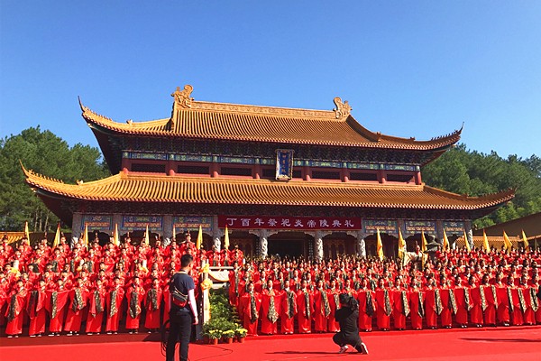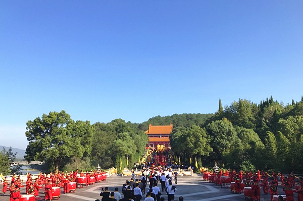祭文讀畢,許達(dá)哲將祭文帛書置于香爐中焚化,禮炮、古樂(lè)響起,祭典儀式圓滿告成。全體參祭人員依次進(jìn)入神農(nóng)大殿瞻仰炎帝圣像。隨后,還舉行了開午門儀式和祭文碑揭碑儀式。9點(diǎn)50分左右,丁酉年“祭祀炎帝陵”典禮活動(dòng)圓滿告成。
