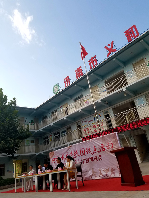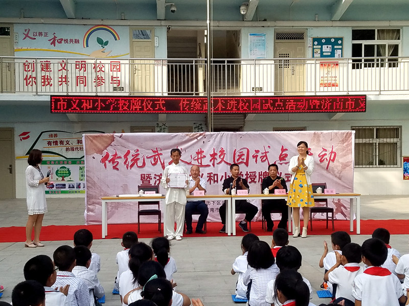 當(dāng)日,傳統(tǒng)武術(shù)進校園試點活動暨濟南市義和小學(xué)授牌儀式舉行。