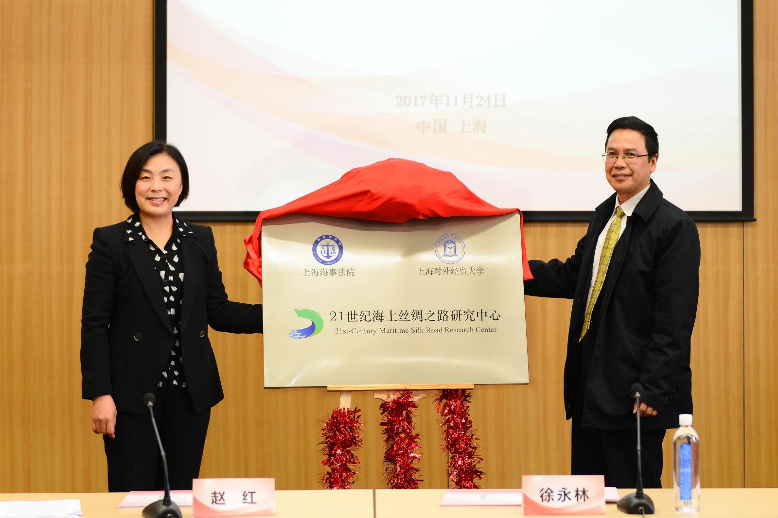 央廣網(wǎng)上海11月28日消息(記者周洪 通訊員 黃丹 姜彤)近日,上海海事法院與上海對(duì)外經(jīng)貿(mào)大學(xué)舉行 “21世紀(jì)海上絲綢之路研究中心”揭牌儀式。上海海事法院院長(zhǎng)趙紅和上海對(duì)外經(jīng)貿(mào)大學(xué)副校長(zhǎng)徐永林分別致辭,并代表兩家單位簽署了合作協(xié)議,共同為研究中心成立揭牌。