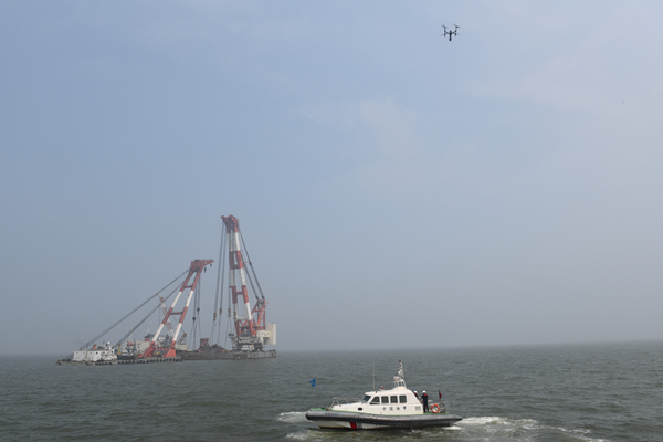 碧海行動是交通運(yùn)輸部為保護(hù)渤海海上交通運(yùn)輸暢通,防止沉船存油泄漏污染海洋環(huán)境而開展的公益性沉船打撈行動。在2017年“碧海行動”中,天津轄區(qū)共有五艘沉船“棗莊888”輪、“蘇連海519”輪、“華源順18”輪、“冀灤漁04604”輪、“渚揚(yáng)3”輪。其中,由于“華源順18”輪、“渚揚(yáng)3”輪等沉沒時間久遠(yuǎn),無法與船舶所有人取得聯(lián)系,天津海事局通過現(xiàn)場走訪公安、工商、街道等部門積極尋找沉船所有人,并征詢沉船殘骸處置意見,切實保護(hù)相對人權(quán)益和訴求。在碧海行動實施過程中,海事局專門建立了5艘沉船的檔案,嚴(yán)格沉船打撈實施的各個環(huán)節(jié)控制;同時,天津海事局利用VTS系統(tǒng)全程重點(diǎn)跟蹤服務(wù)碧海行動,通過VHF定時播發(fā)安全信息,對打撈水域?qū)嵤┯行У慕煌ü苤疲瑬|疆海事局加大了電子巡航力度,利用無人機(jī)技術(shù)充分發(fā)揮三位一體立體巡航作用,有效保障沉船打撈工作順利進(jìn)行。