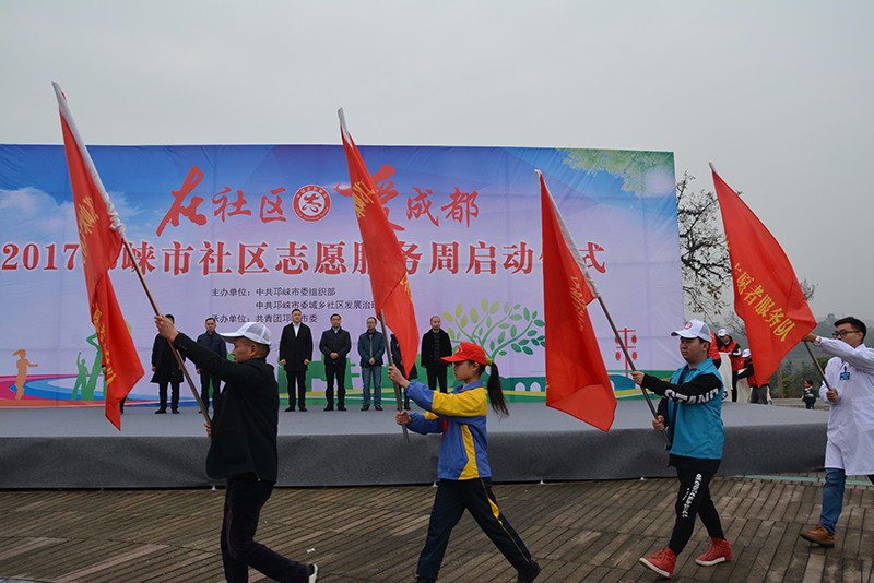央廣網(wǎng)成都12月5日消息 (記者 劉濤)12月5日,成都邛崍市“在社區(qū)·愛成都”2017年社區(qū)志愿服務(wù)周啟動(dòng)儀式在該市河濱廣場舉行。該市涉及部門、各鎮(zhèn)鄉(xiāng)(街道)相關(guān)負(fù)責(zé)人、機(jī)關(guān)黨員志愿者、中小學(xué)志愿者、社會組織志愿者、醫(yī)生志愿者、文化志愿者、法律志愿者、社區(qū)志愿者和廣大社區(qū)群眾參加啟動(dòng)儀式。