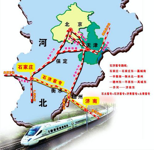 石家莊至濟(jì)南高速鐵路作為國家鐵路“十二五”規(guī)劃重點(diǎn)建設(shè)項(xiàng)目,全線298公里,運(yùn)行時(shí)速250公里每小時(shí)。該線以河北省石家莊市、山東省濟(jì)南市兩省會(huì)城市為始終點(diǎn),沿途經(jīng)過河北衡水、山東德州兩地級(jí)市,西伸、東進(jìn)分別與石太客專、濟(jì)青高鐵相接,橫貫晉冀魯三省。同時(shí),線路還在石家莊站與京廣高鐵、在德州東站與京滬高鐵銜接,全線共設(shè)11個(gè)車站,除石家莊、德州東兩站外,全線新建石家莊東、藁城南、辛集南、衡水北、景州、平原東、禹城東、齊河、濟(jì)南東9站。