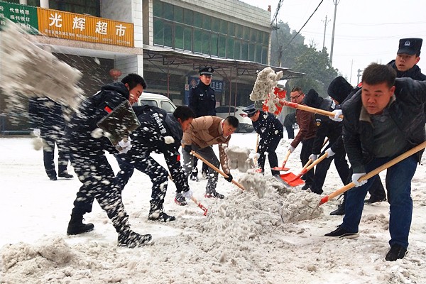 隨著大雪冰凍天氣持續(xù),當(dāng)天桃江已有8條道路結(jié)冰,1月26日,桃江全境被積雪覆蓋,多條道路結(jié)冰,受阻車輛在冰雪中掙扎前行。民警“聞雪而動(dòng)、見雪上路、邊下邊除”,鋪撒融雪鹽,在寒風(fēng)中揮動(dòng)鍬鎬,揮汗如雨,以最快的速度搶通冰封路段。由于氣溫持續(xù)走低,加之降雪不斷,被搶通的冰面很快再次凝凍,民警持續(xù)作戰(zhàn),餓了在路邊吃碗方便面,渴了就喝口冰水,雙腳凍得沒了知覺就跑動(dòng)一陣,手磨破了依舊咬牙堅(jiān)持。