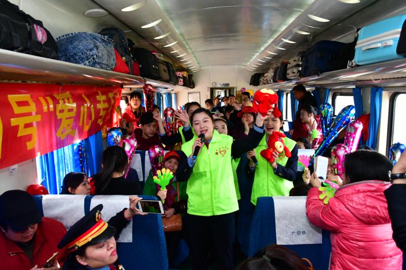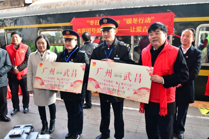 央廣網(wǎng)廣州2月1日消息(記者鄭澍)2月1日上午9時12分,伴著轟鳴的汽笛聲,2018首輛“共青團號”愛心鐵路專列從廣州火車站徐徐開出,直奔湖北武昌。這預(yù)示著由共青團廣州市委員會、廣州市文明辦、廣州市來穗人員服務(wù)管理局、廣州市交通委員會、廣鐵集團、廣東省青少年發(fā)展基金會、廣州市公交集團、廣州王老吉大健康產(chǎn)業(yè)有限公司等18個單位聯(lián)合主辦的2018年“冬日暖陽”春運直通車正式啟程。