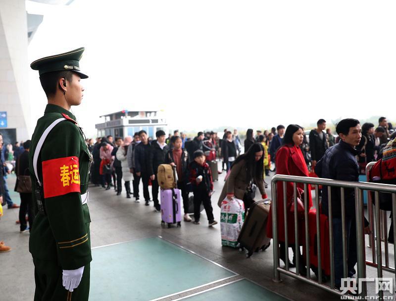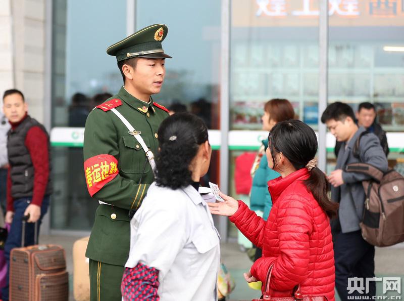央廣網泉州2月14日消息(記者彭建軍 通訊員彭勇 莊標)春運期間,隨著務工人員紛紛返鄉(xiāng),車站客流量出現高峰,在福建泉州動車站,負責車站春運執(zhí)勤的武警官兵認真履職的同時,為旅客提供熱情周到的便民服務,用實際行動溫暖旅客回家路。