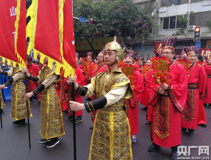 一大早,通濟(jì)橋附近熱鬧非凡,由兩千多人組成的12個(gè)巡游方陣依次排開(kāi),他們當(dāng)中既有佛山好人、大城工匠等知名人士,還有各界公益慈善力量、企業(yè)方陣、市民代表等。各個(gè)方陣內(nèi)涵豐富,嶺南醒獅、財(cái)神爺?shù)葌鹘y(tǒng)元素以及太極拳、扇子舞等大眾體育元素都包含其中,每個(gè)方陣由社會(huì)主義核心價(jià)值觀主題花燈引導(dǎo)。在行進(jìn)中,巡游隊(duì)伍還不時(shí)與沿路熱情的市民互動(dòng),將風(fēng)車(chē)與紅圍巾送給市民,互致新年祝福。