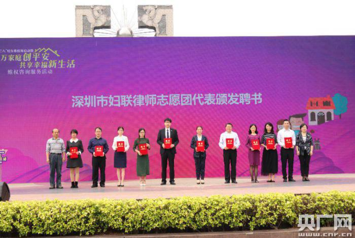 央廣網(wǎng)深圳3月5日消息(記者李強(qiáng) 通訊員歐陽永艷 聶玉潔 趙禎禎)“百萬家庭創(chuàng)平安 共享幸福新生活”,為紀(jì)念第108個(gè)“三八”國際勞動(dòng)?jì)D女節(jié),深圳“三八”婦女維權(quán)周啟動(dòng)儀式舉行;顒(dòng)現(xiàn)場,一批平安家庭創(chuàng)建示范社區(qū)、反家庭暴力工作示范點(diǎn)等單位獲頒授牌,啟動(dòng)百萬家庭簽名承諾“反家暴·創(chuàng)平安”等活動(dòng)。