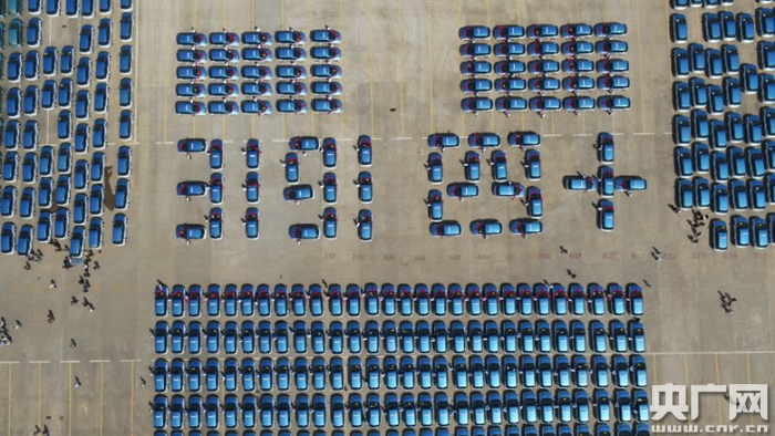 純電動(dòng)出租車排列成“四十”、“3191”的數(shù)字造型及方陣