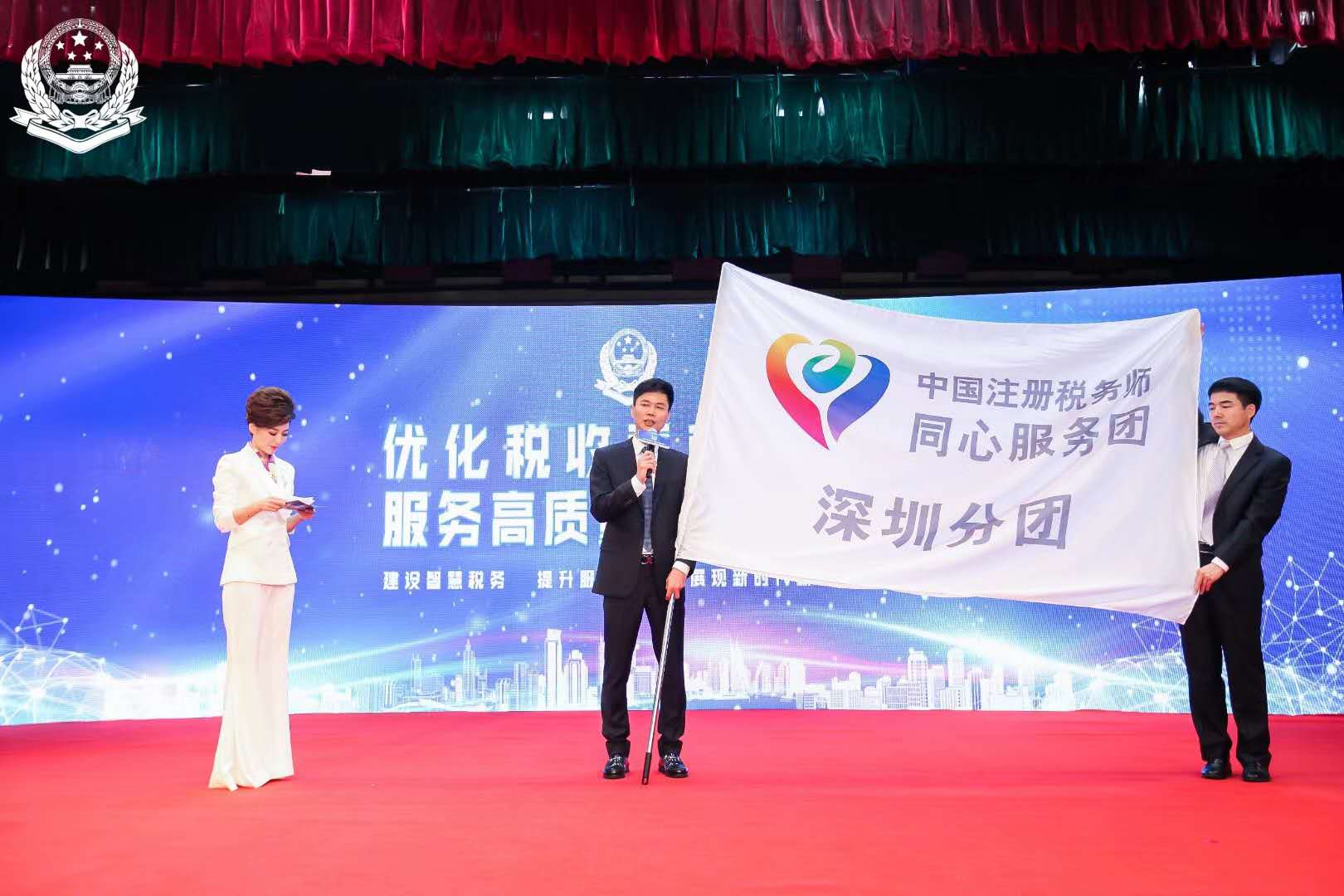 啟動儀式還舉行了中國注冊稅務(wù)師同心服務(wù)團(tuán)深圳分團(tuán)授旗授匾儀式,深圳市地稅局副局長楊龍、深圳注冊稅務(wù)師協(xié)會會長桂乃希為深圳稅務(wù)師志愿者組成的同心服務(wù)團(tuán)授旗并頒發(fā)牌匾,以表彰深圳涉稅專業(yè)服務(wù)人員積極參與涉稅公益服務(wù),為優(yōu)化深圳營商環(huán)境做出的積極貢獻(xiàn)。