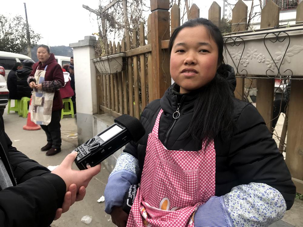 記者在云山村采訪村民夏永飛。