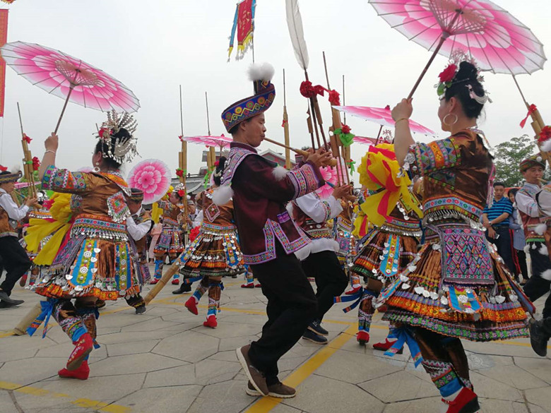 今天,在廣西民族博物館,來(lái)自全區(qū)各地的少數(shù)民族同胞代表穿戴著自己的民族服飾,帶著自己的特色表演展示給各路觀眾。民族特色歌舞包括凌云長(zhǎng)號(hào)、打銅鼓、田間舞、蘆笙踩堂、劉三姐民歌《藤纏樹(shù)》等。