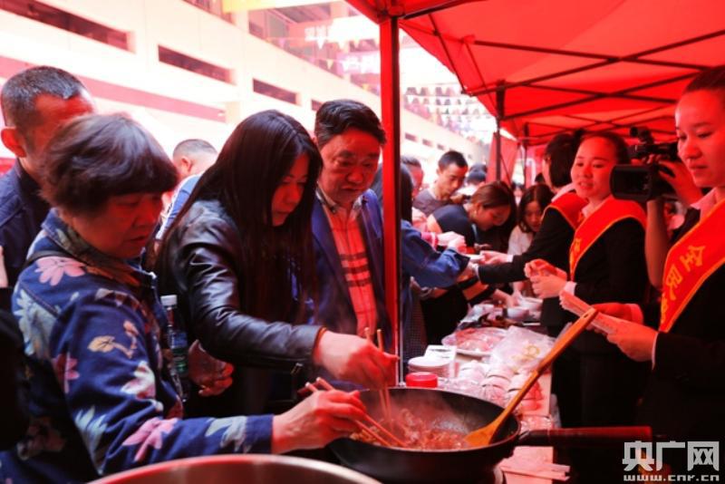 活動(dòng)現(xiàn)場(chǎng)吸引了眾多消費(fèi)者品嘗湘菜,湘菜泰斗王墨泉也在其中