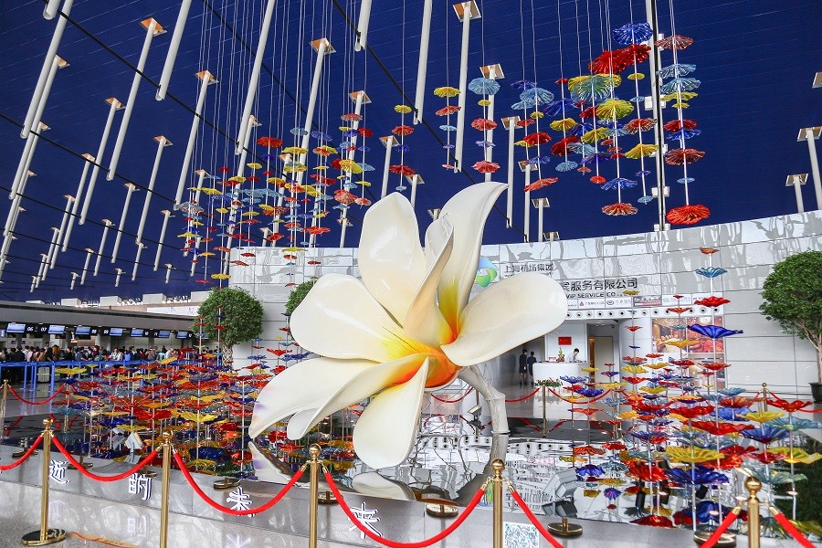央廣網(wǎng)上海5月9日消息(記者傅聞捷 通訊員沈雪婷)芳菲時(shí)節(jié),浦東機(jī)場(chǎng)又迎來嶄新景觀藝術(shù)裝置。1號(hào)航站樓出發(fā)公共大廳《海上花》大型藝術(shù)裝置綻放一朵美麗的巨型“白玉蘭”,另一代表上海海派文化的藝術(shù)裝置——《魔都之音》在2號(hào)航站樓出發(fā)公共大廳同時(shí)亮相。