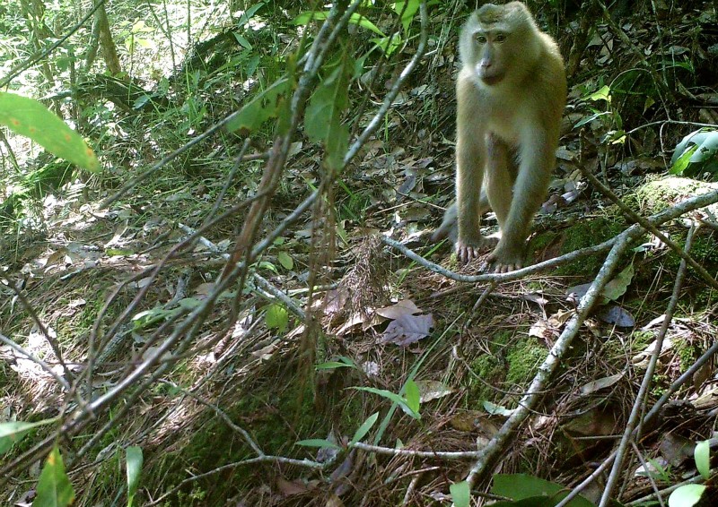 今年3月份,威遠江省級自然保護區(qū)工作人員在保護區(qū)大蛇腰梁子安裝了一臺紅外線相機對野生動物進行監(jiān)測。5月8日,在對紅外線相機進行回收抽檢的時候,保護區(qū)工作人員周亦發(fā)現(xiàn)紅外相機拍攝到了一只猴子的視頻畫面?吹皆摵镒硬煌谄胀ǐJ猴,周亦并與景谷縣森林公安局取得了聯(lián)系,經(jīng)咨詢專家及上網(wǎng)圖譜比對,森林公安民警初步鑒定,這只猴子是國家一級保護動物豚尾猴。
