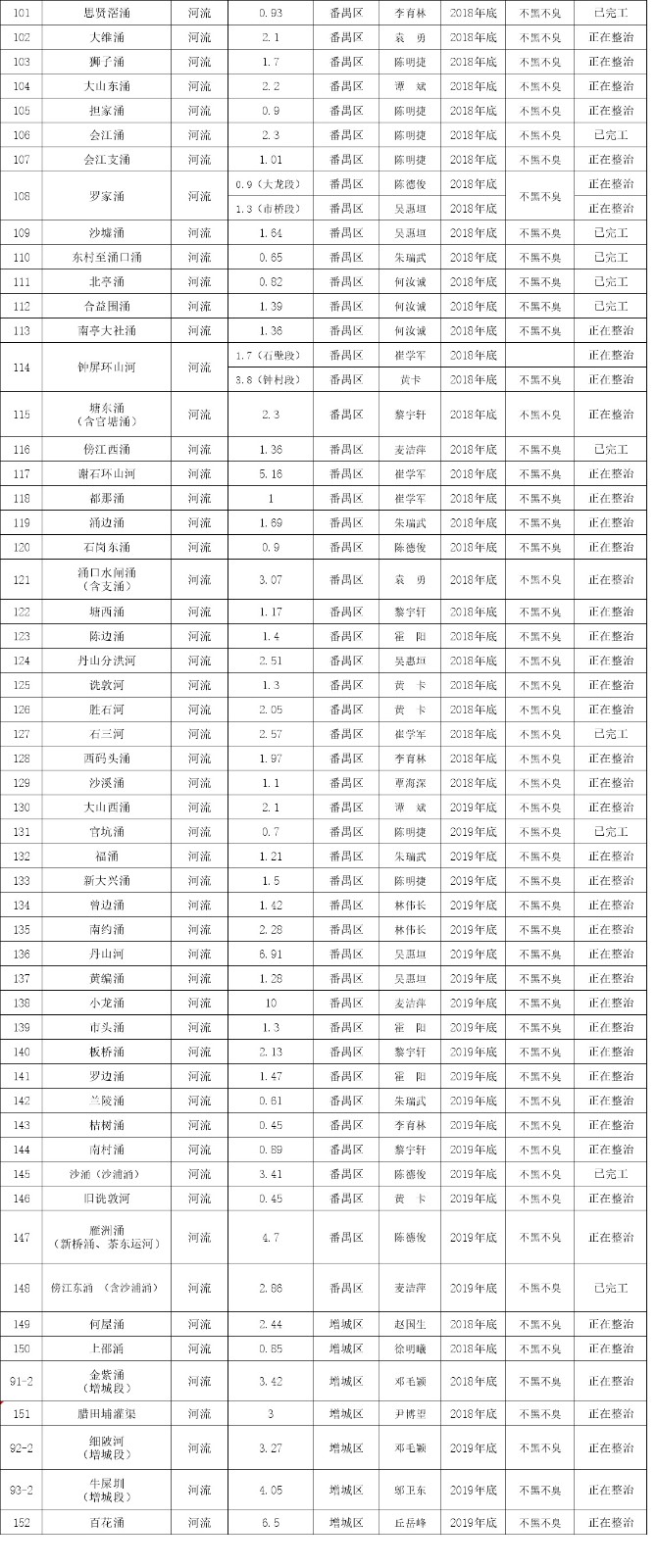 此次公布的為剩余的152條黑臭河涌,按要求,這批河涌要在2020年前逐步完成基本消除黑臭目標。從各區(qū)分布看,番禺區(qū)數(shù)量最多,一共49條居榜首位置;越秀區(qū)2條,數(shù)量最少。