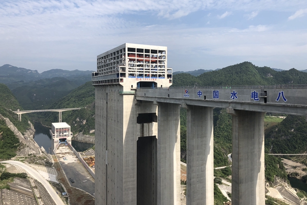 構(gòu)皮灘水電站副廠長(zhǎng)、總工程師王貴來(lái)介紹,根據(jù)構(gòu)皮灘水電站通航工程的技術(shù)特點(diǎn)、自然條件和建設(shè)要求,該通航工程采用三級(jí)垂直升船機(jī),第一、三級(jí)采用船廂下水式垂直升船機(jī),第二級(jí)采用全平衡式垂直升船機(jī)。“因?yàn)槲覀兊淖罡咄ê剿^達(dá)到199米,如果采用船閘的方式通航,最低需要采用七級(jí)船閘,一艘貨船單單在構(gòu)皮灘通航就需要耗費(fèi)很長(zhǎng)時(shí)間。但是現(xiàn)在采用垂直升船機(jī),通過(guò)2306米的航道,我們?cè)O(shè)計(jì)的單向通航時(shí)間只有38分鐘。”