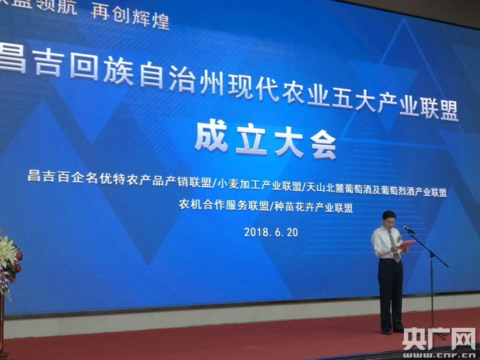 央廣網(wǎng)烏魯木齊6月20日消息(記者張孝成)新疆昌吉回族自治州今天掛牌成立了現(xiàn)代農(nóng)業(yè)五大產(chǎn)業(yè)聯(lián)盟。這是新疆首個(gè)以農(nóng)業(yè)技術(shù)服務(wù)和農(nóng)產(chǎn)品加工推介為主,政府搭建平臺(tái)、企業(yè)共同參與的商業(yè)聯(lián)盟組織。