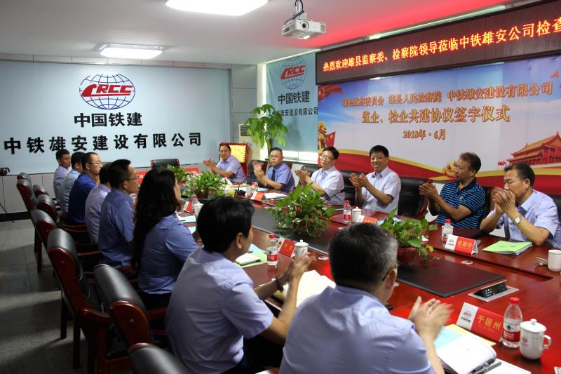 央廣網(wǎng)雄安6月28號消息(記者孟曉光 通訊員趙學(xué)成 王舒)記者從雄安新區(qū)雄縣監(jiān)察委了解到,27日晚,雄安新區(qū)雄縣監(jiān)察委、雄縣檢察院,與首家在雄安新區(qū)完成注冊的建筑類央企子公司——中鐵雄安建設(shè)有限公司舉行了新區(qū)成立后首例“監(jiān)企、檢企共建”簽約啟動儀式。雙方現(xiàn)場簽訂《監(jiān)企共建實施意見》與《檢企共建協(xié)議書》,這是雄安新區(qū)首例“監(jiān)企、檢企共建”合作,這也標(biāo)志著雄安新區(qū)關(guān)于中央企業(yè)和國有企業(yè)預(yù)防懲治職務(wù)犯罪工作的合作機制正式建立。