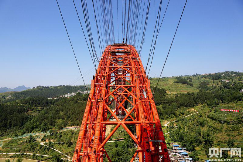 作為我國典型的高山峽谷大跨度鋼管拱橋和世界同類型橋梁之最,大小井特大橋結(jié)構(gòu)、技術(shù)復(fù)雜,質(zhì)量要求高。貴州橋梁建設(shè)集團(tuán)有限責(zé)任公司總工程師張勝林介紹,施工單位克服了地形陡峭、大體積混凝土澆筑、毫米級(jí)焊接拼裝精度控制等難題。大橋主拱圈采用無支架纜索吊裝施工工藝。“所謂上承式就是行車道板在拱的上面,在貴州高速公路跨越U型河谷拱橋就是首選的橋型。拱橋?qū)嵤┕に嚫鼜?fù)雜,它的好處是總體的橋長會(huì)短一些,如果要修建一個(gè)斜拉橋,總體的橋長就會(huì)很長,橋越長造價(jià)就越高!