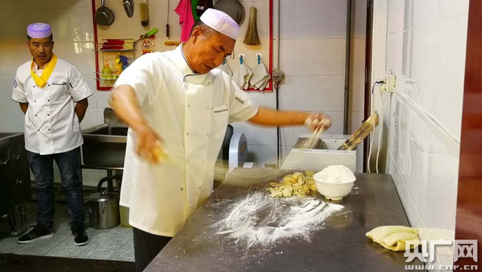化隆回族農(nóng)民在學(xué)習(xí)拉面技術(shù)