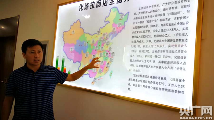 在海東市化隆回族自治縣,各項(xiàng)扶貧工程中有一項(xiàng)很特別:拉面扶貧工程。目前,化隆人在全國(guó)各地開辦了1.5多萬(wàn)家拉面館,從業(yè)人員10萬(wàn)多人,占全縣人口的1/3,拉面經(jīng)濟(jì)收入占全縣農(nóng)民人均收入一半以上,勞務(wù)輸出是化隆縣城鄉(xiāng)富余勞動(dòng)力增收脫貧的重要渠道。