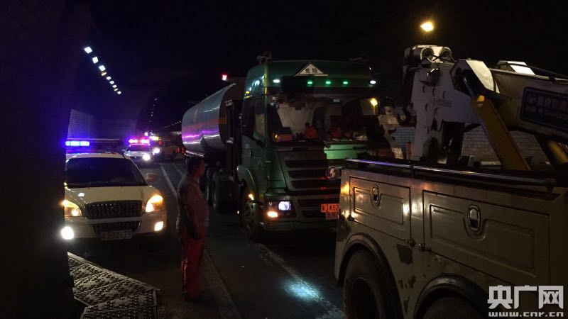 接到報(bào)警后,值班民警立即趕赴現(xiàn)場(chǎng)停車警戒,并在后方設(shè)置反光錐形筒和警告標(biāo)志牌。經(jīng)現(xiàn)場(chǎng)調(diào)查,該車是一輛河北牌照的危險(xiǎn)化學(xué)品運(yùn)輸車,車內(nèi)裝載有毒易燃物質(zhì)環(huán)氧丙烷,總重48噸。民警立即對(duì)該車進(jìn)行查驗(yàn),發(fā)現(xiàn)該車罐體密封完好,無有毒物質(zhì)泄漏。據(jù)該車駕駛?cè)私榻B,他駕駛該車途徑桃墅嶺隧道時(shí),車輛突然拋錨,不能發(fā)動(dòng)了,感覺車輛停在隧道內(nèi)非常危險(xiǎn),就立馬報(bào)警了。