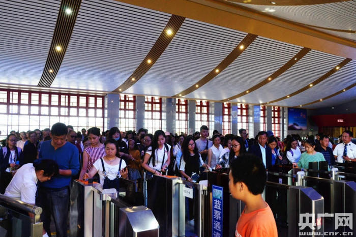 旅客在楚雄站有序排隊檢票進站乘車(央廣網發(fā) 郭婧 攝)