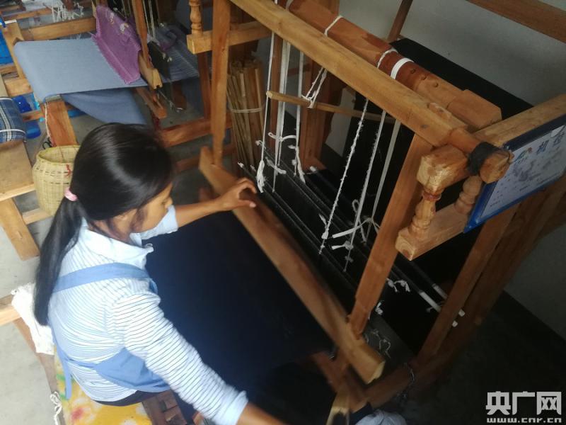 “90后”媽媽梁正琴是布依族,她原來住在者相鎮(zhèn)董菁村,2017年5月全家搬遷到土布小鎮(zhèn),當?shù)卣o他們分了房子。梁正琴的丈夫在工地上打工,她就在土布小鎮(zhèn)里織布賺錢。