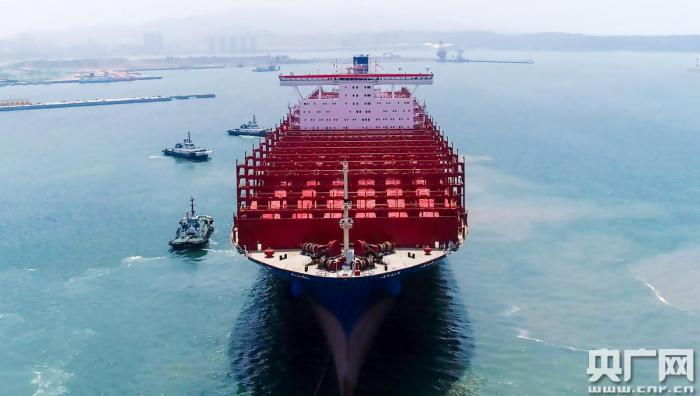 圖為世界上最大級(jí)別集裝箱船在大連交付(央廣網(wǎng)發(fā) 王鑫 攝)