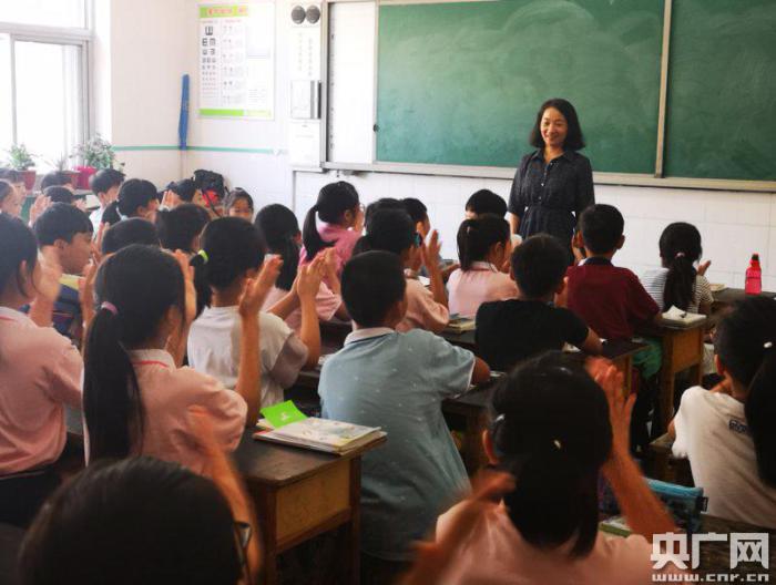 李華老師在給北京市海淀區(qū)中關(guān)村三小雄安校區(qū)五年級(jí)五班孩子們上新學(xué)期第一節(jié)語文課 央廣網(wǎng)發(fā) 薛梅 攝