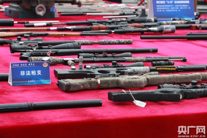 現(xiàn)場(chǎng)展示非法槍支(央廣網(wǎng)發(fā) 重慶市公安局供圖)