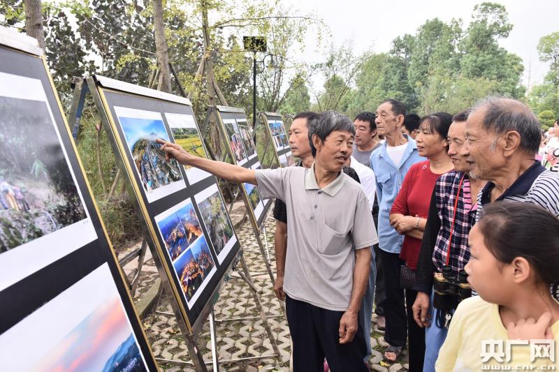 群眾參觀“歡樂豐收活力油溪”主題攝影展(央廣網(wǎng)記者 劉湛 攝)