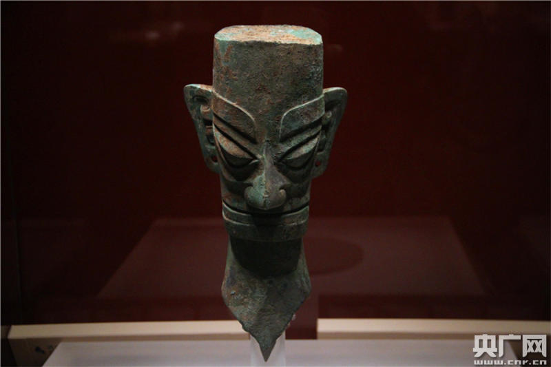 三星堆出土的青銅人頭像(央廣網(wǎng)發(fā) 記者賈宜超攝)