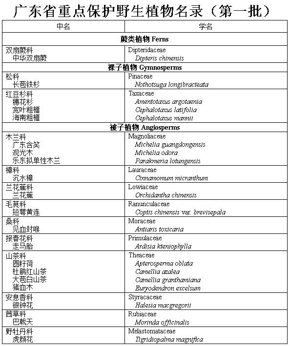 附:廣東省重點(diǎn)保護(hù)野生植物名錄(第一批)