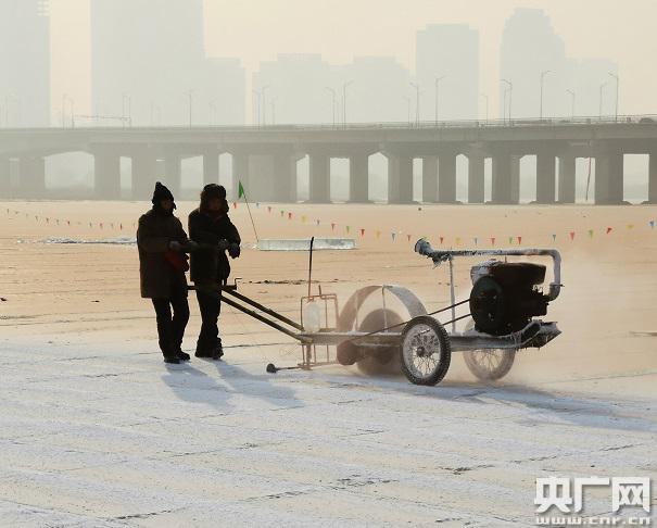央廣網(wǎng)哈爾濱12月12日消息(記者毛更偉 楊沼畔 喬仁慧 遲嵩 馮志遠(yuǎn) 見(jiàn)習(xí)記者唐國(guó)榮 瞿文斌)歲末年關(guān),冰雪旅游的市場(chǎng)拉開(kāi)大幕。目前,黑龍江省已經(jīng)開(kāi)始了取冰制冰雕的準(zhǔn)備工作。松花江上取冰正當(dāng)時(shí),取冰人正在為以冰雪大世界為代表的黑龍江各大冰雪景點(diǎn)輸送冰雪原料。