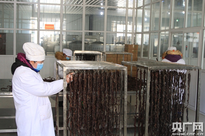 工人正在制作牦牛肉干(央廣網(wǎng)記者 普布次仁 攝)