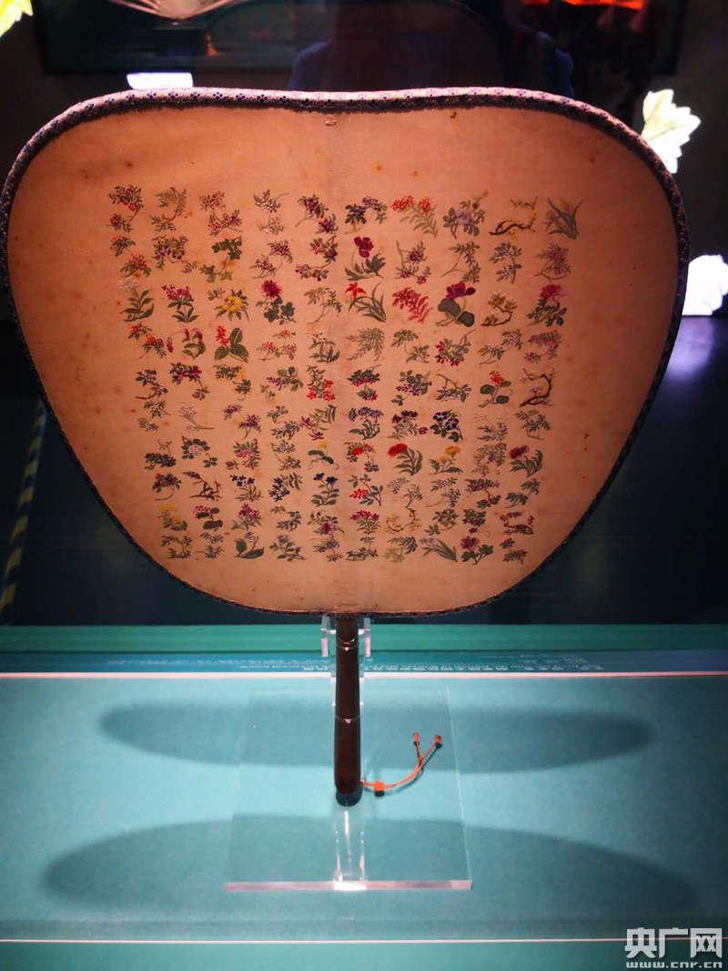 象牙雕牙絲錦地花卉山水紋章扇。廣東省博物館供圖