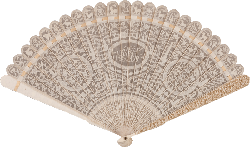 外銷扇,是在清代中西海上貿(mào)易背景下應(yīng)運(yùn)而生的外銷工藝品。16世紀(jì),東西航線的開通催生了大規(guī)模海上貿(mào)易。茶、絲綢和瓷器,源源不斷從古老的中國輸往西方國家,一同漂洋過海的,還有神秘的東方文化。中國趣味和中國風(fēng),在西方市場引發(fā)了廣泛的好奇與向往。中國工匠尤其是廣州工匠將“廣式”工藝與西洋審美相融合,創(chuàng)作出了大量中西風(fēng)格共融,專供外銷的扇子。這些精巧華美的外銷扇價(jià)格相對(duì)低廉,極大滿足了西方市場對(duì)扇子的熱切渴望和需求,因此,“廣州制作”(Made in canton)成為享譽(yù)世界的知名品牌,“中國趣味”成為當(dāng)時(shí)最新時(shí)尚的代名詞。