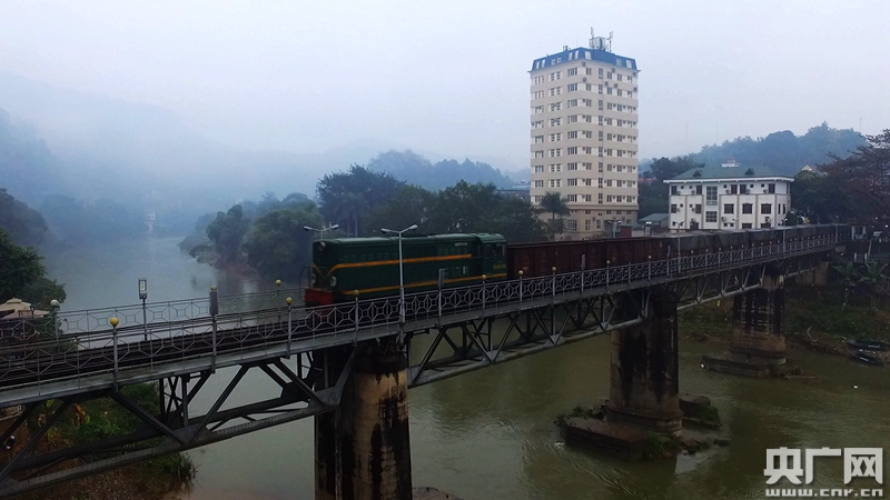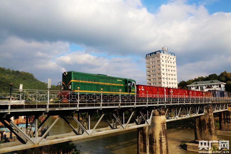 中亞班列貨物列車通過(guò)位于云南省河口縣的中越鐵路大橋。央廣網(wǎng)發(fā) 劉昊亮攝