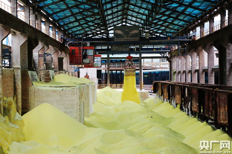 越南進(jìn)口硫磺通過(guò)中亞班列運(yùn)抵云天化紅磷分公司專用線卸車。央廣網(wǎng)發(fā) 劉昊亮攝