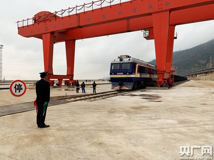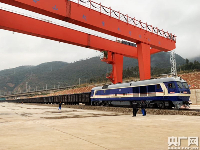 貨物列車首次開進玉昆鋼鐵集團鐵路專用貨場(央廣網(wǎng)發(fā) 石佳 攝)