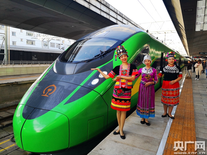 時(shí)速160公里“復(fù)興號(hào)”動(dòng)車(chē)首秀(央廣網(wǎng)發(fā) 圖片由中國(guó)鐵路昆明局集團(tuán)公司提供)
