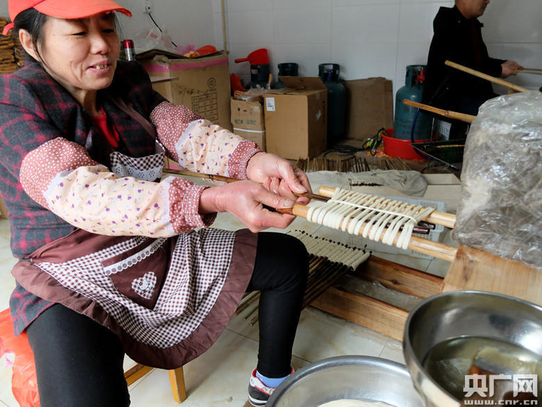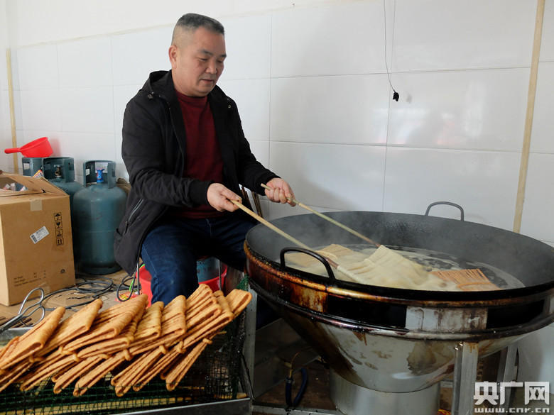 央廣網(wǎng)恭城1月14日消息(記者鄧君洋 通訊員鄭智敏)1月12日是臘月初七,春節(jié)日益臨近,廣西桂林市恭城瑤族自治縣的排散作坊已進(jìn)入一年中最繁忙的時(shí)節(jié),恭城鎮(zhèn)吉祥街一家排散制作作坊里,百姓們?cè)诩影嗉狱c(diǎn)制作獨(dú)具地方特色的瑤族傳統(tǒng)美食排散,供應(yīng)春節(jié)市場(chǎng)。