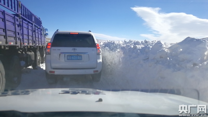 路面積雪造成交通擁堵 央廣網(wǎng)發(fā) 瑪多交警供圖