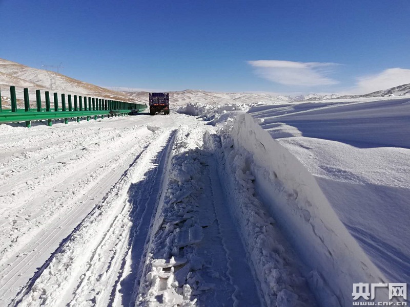 強降雪導(dǎo)致路面積雪嚴重 央廣網(wǎng)發(fā) 瑪多交警供圖